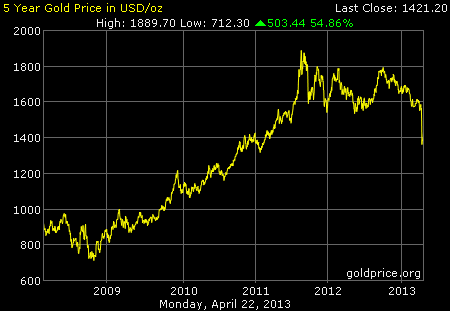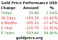 Data ini diambil per 22 April 2013, terlihat bahwa dalam 5 tahun terakhir kenaikan emas 54 %, sedangkan pada jangka waktu yang lebih pendek, seperti 1 tahun, 6 bulan dan 30 hari terakhir, emas justru mengalami penurunan.